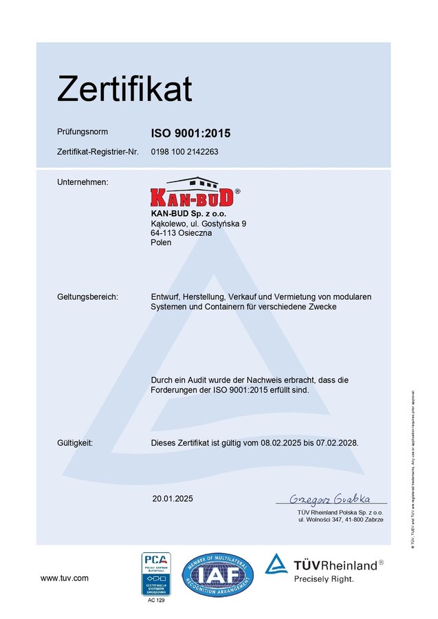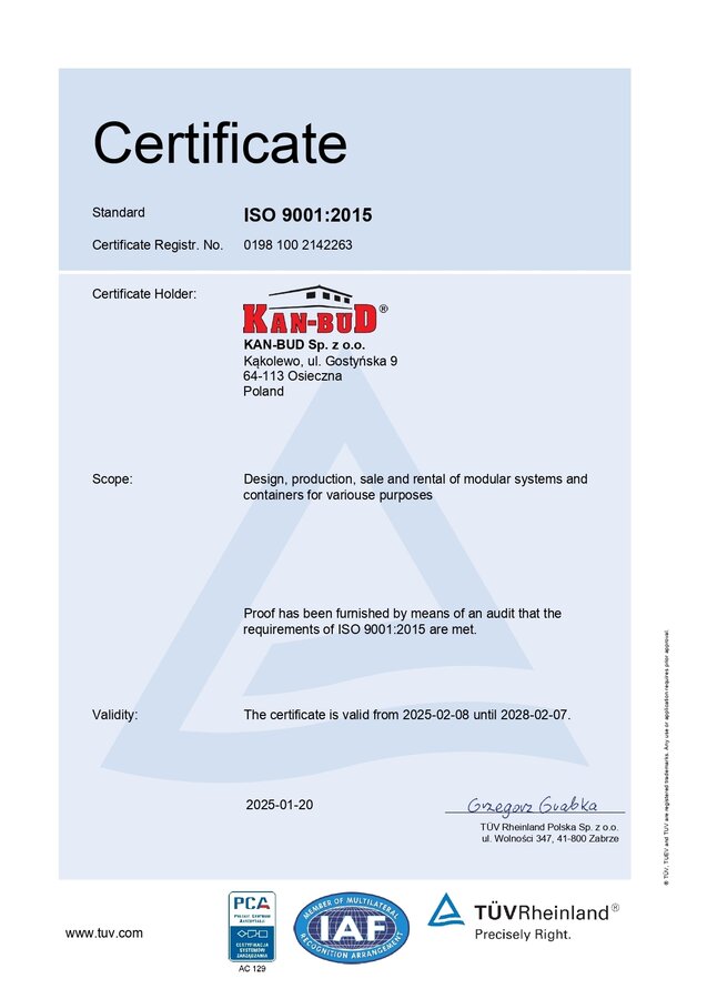 Kan-Bud to w 100% kanadyjski kapitał w polskiej firmie. Funkcjonujemy już od 1992 roku jako siostrzane przedsiębiorstwo spółki Northgate Industries Ltd, Edmonton. Nasza misja to perfekcyjne "konstruowanie przestrzeni". Projektujemy, produkujemy, sprzedajemy oraz wynajmujemy niezwykle funkcjonalne modułowe zespoły kontenerowe. Działamy w skali globalnej, wspierając swoimi działaniami przede wszystkim przedsiębiorstwa z sektora gazowego oraz naftowego, usług budownictwa, ale również mieszkalnictwa, obrony, czy edukacji. Zawsze sięgamy po nowoczesne rozwiązania, które są zarazem przyjazne dla środowiska naturalnego. Wybierając Kan-Bud, stawiasz na solidnego i lojalnego partnera biznesowego. Daj się zaskoczyć jakością oraz wszechstronnością naszych produktów!