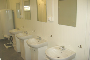 Kompleks ten zawiera szatnie, pomieszczenia sanitarne z kabinami prysznicowymi, zaplecze bytowe, mini kuchnia i schody.