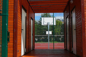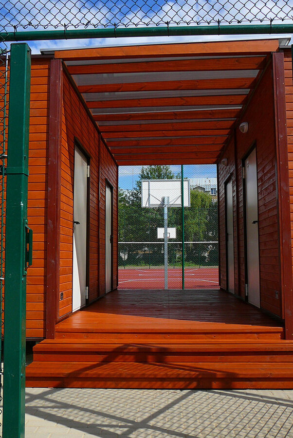 Zaplecze szatni dla projektu „Moje Boisko orlik 2012” – standard plus – wykonane na bazie szkieletu drewnianego.