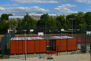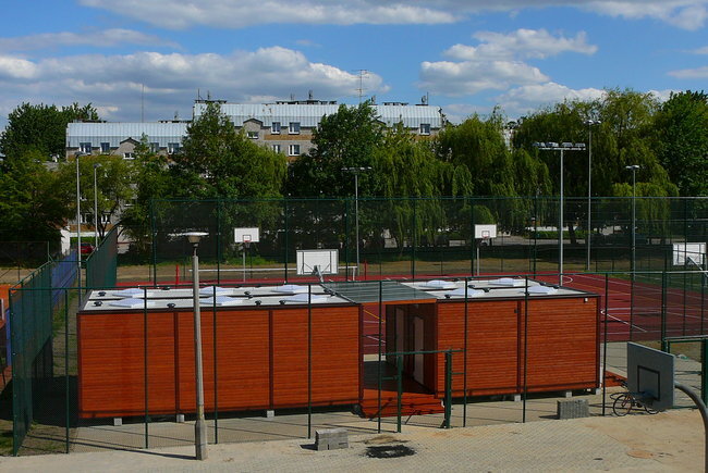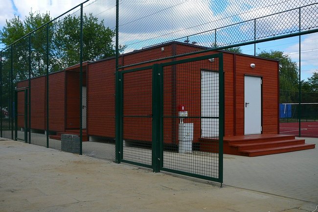 Kontenerowe zaplecze szatni przy boisku wielofunkcyjnym Orlik.