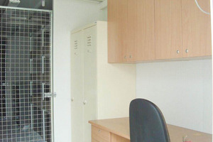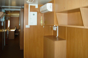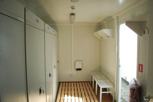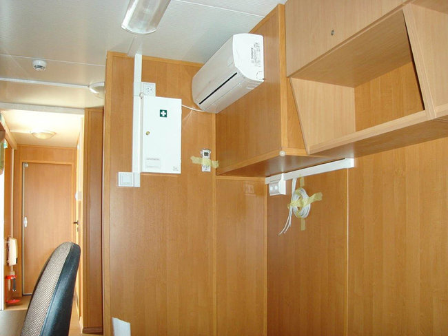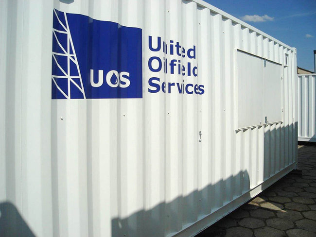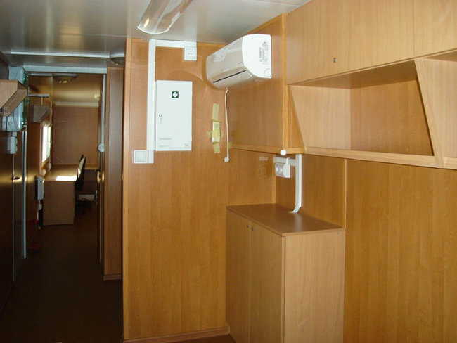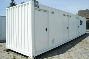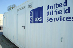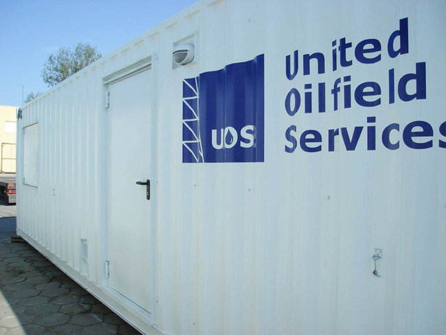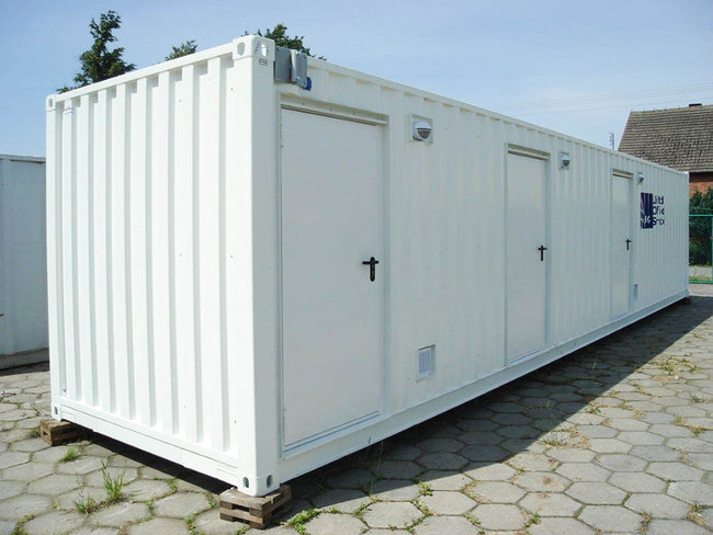Zestaw kontenerowy składający się z biur, warsztatów i kontenerów technicznych wykonany z 40-stopowych kontenerów oceanicznych.
